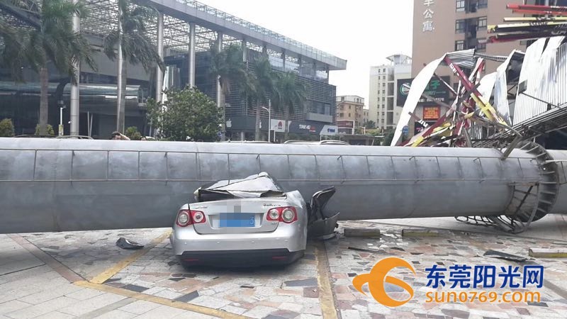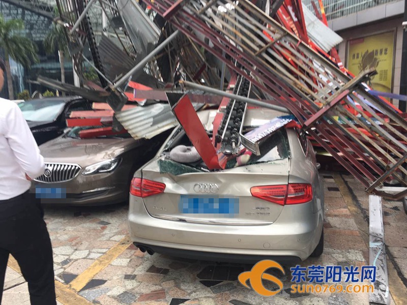 9月4日中午,根據(jù)廣東東莞網(wǎng)友爆料稱,位于東莞市東莞大道輔道一怡豐路十字路口一個(gè)大型廣告牌倒塌導(dǎo)致停車場(chǎng)內(nèi)多車受損嚴(yán)重,有幾輛車直接被壓扁,完全報(bào)廢,不過(guò)慶幸的是沒(méi)有造成人員傷亡。